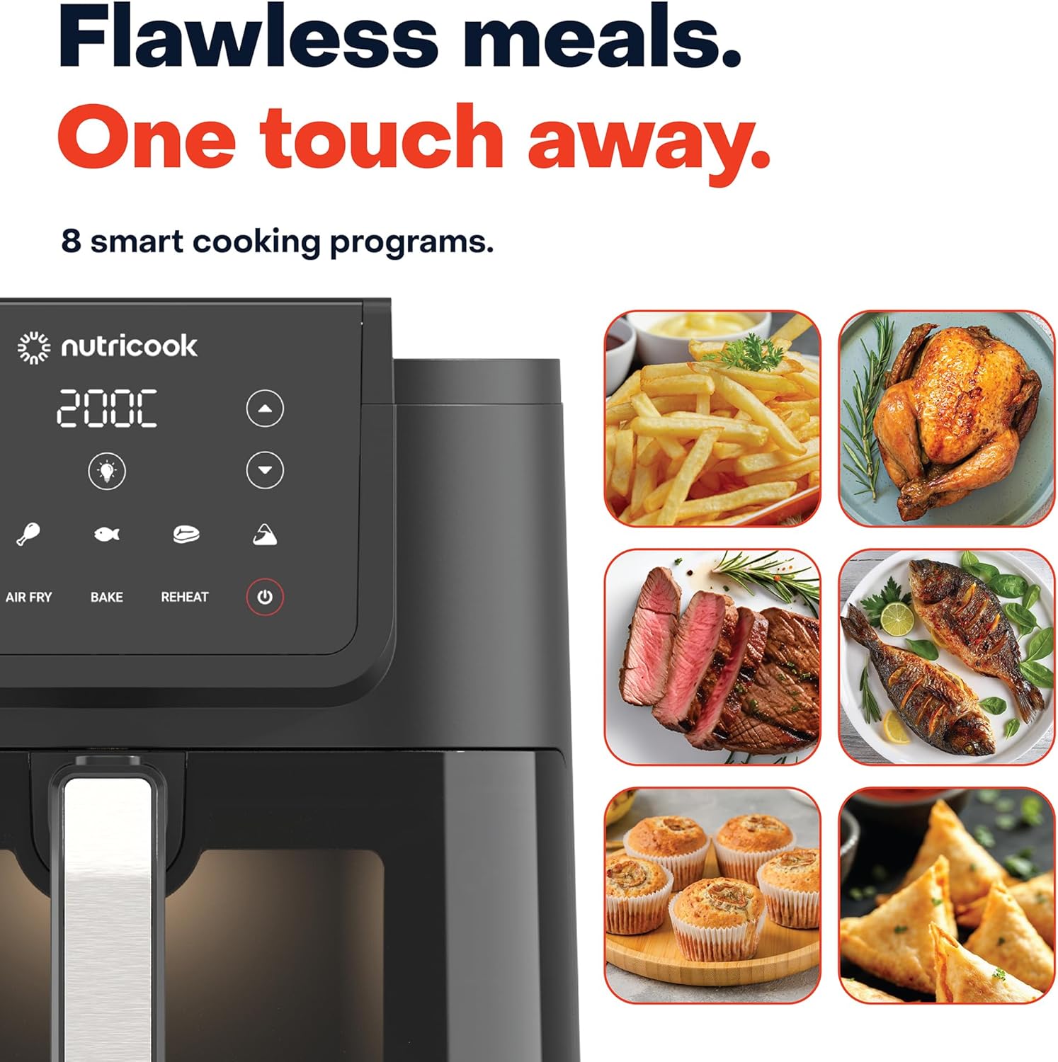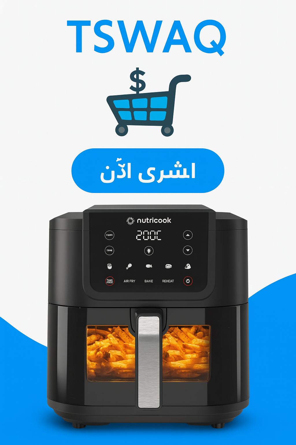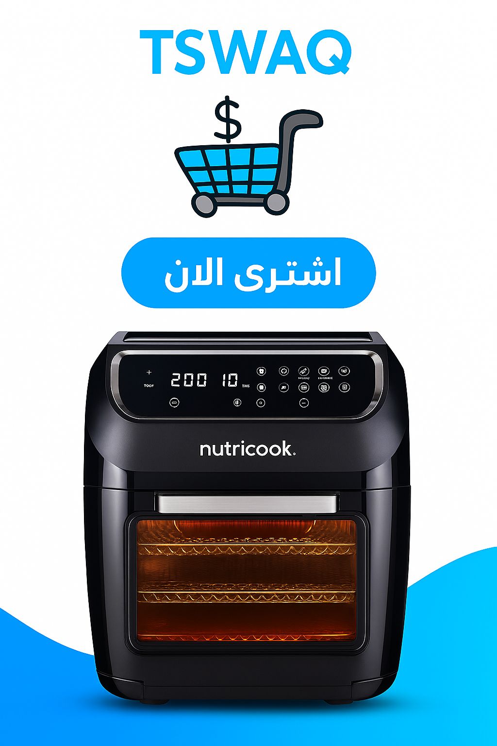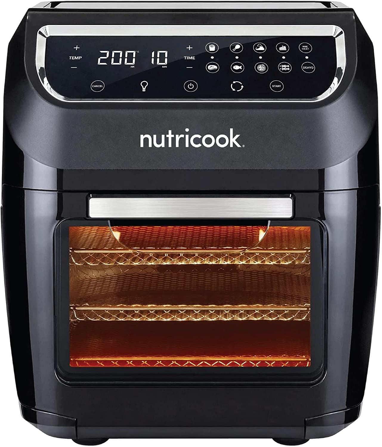فرن المقلاة الهوائية من نوتري كوك، 1800 واط، شاشة تحكم رقمية/بلمسة واحدة، 8 برامج مضبوطة مسبقا، 12 لتر ، اسود