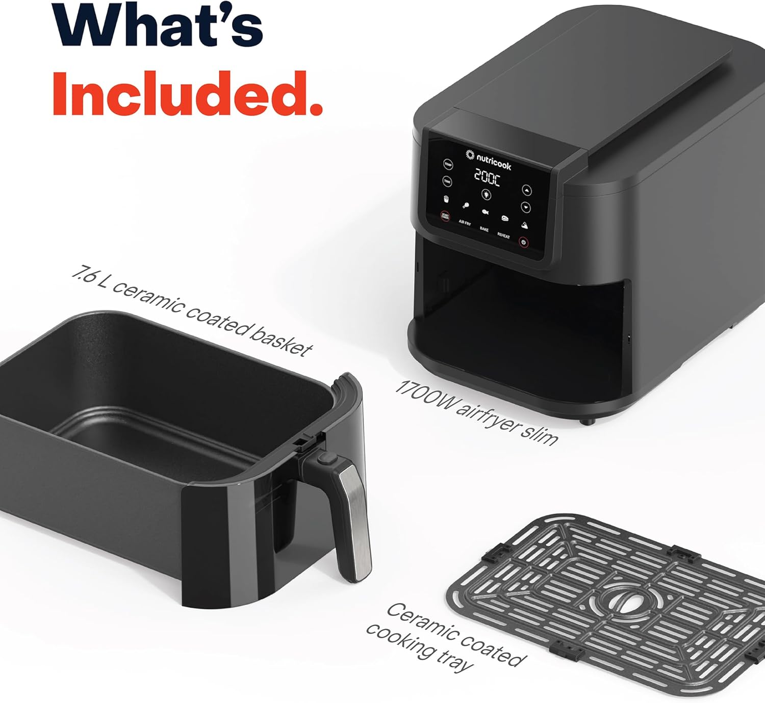 قلاية نيوتري كوك سلة اير فراير رفيعة XL AFS200 سعة 7.6 لتر بتصميم نحيف موفر للمساحة للقلي بالهواء والخبز والتسخين مع 5 نوافذ شفافة مضبوطة مسبقا وداخلية أسود، 1700.0 واط