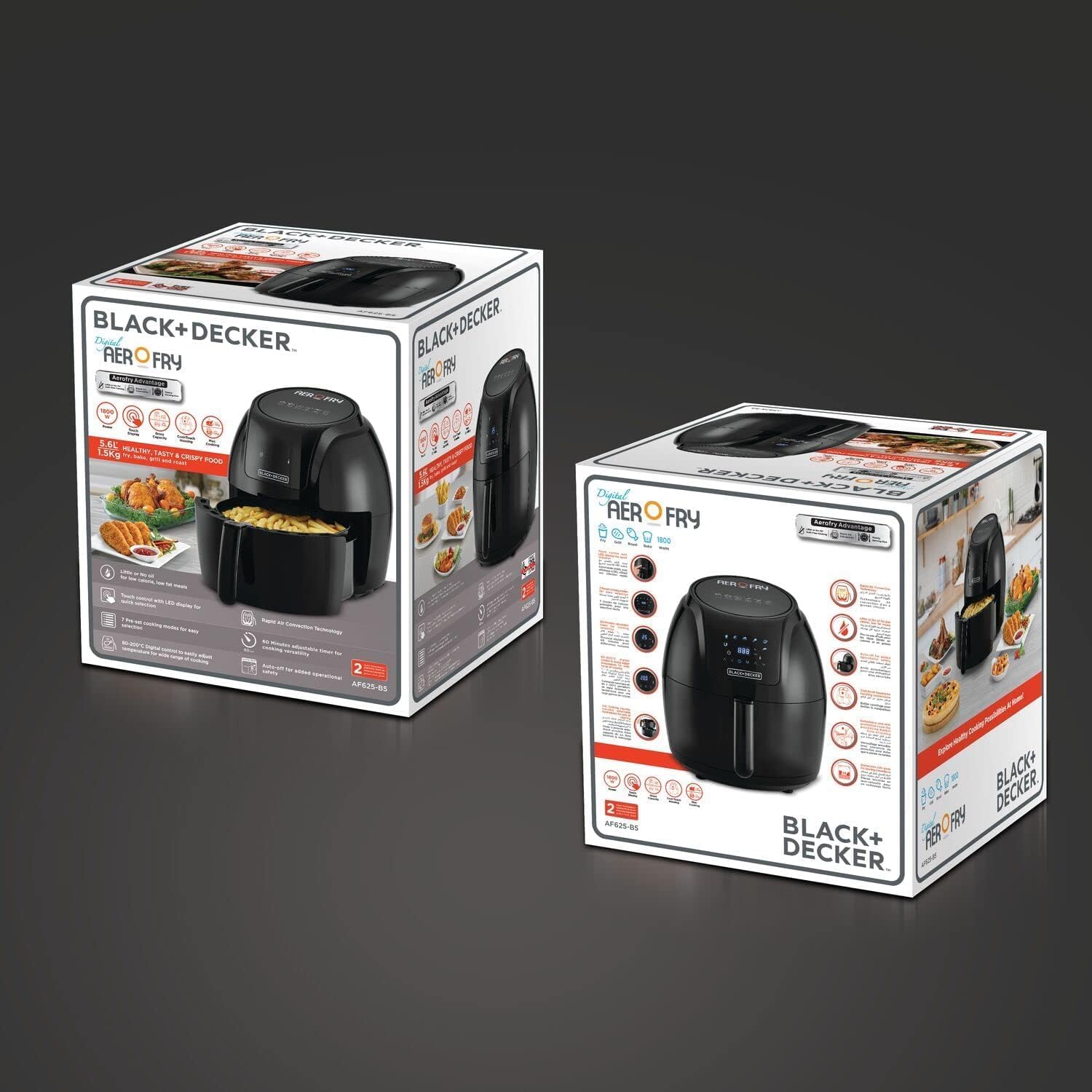 مقلاة هوائية رقمية مع دوران سريع للهواء مناسب للقلي والشوي والتحميص والخبز 1800 وات و 220 فولت من بلاك اند ديكر، سعة 5.6 لتر (AF625-B5 XL)